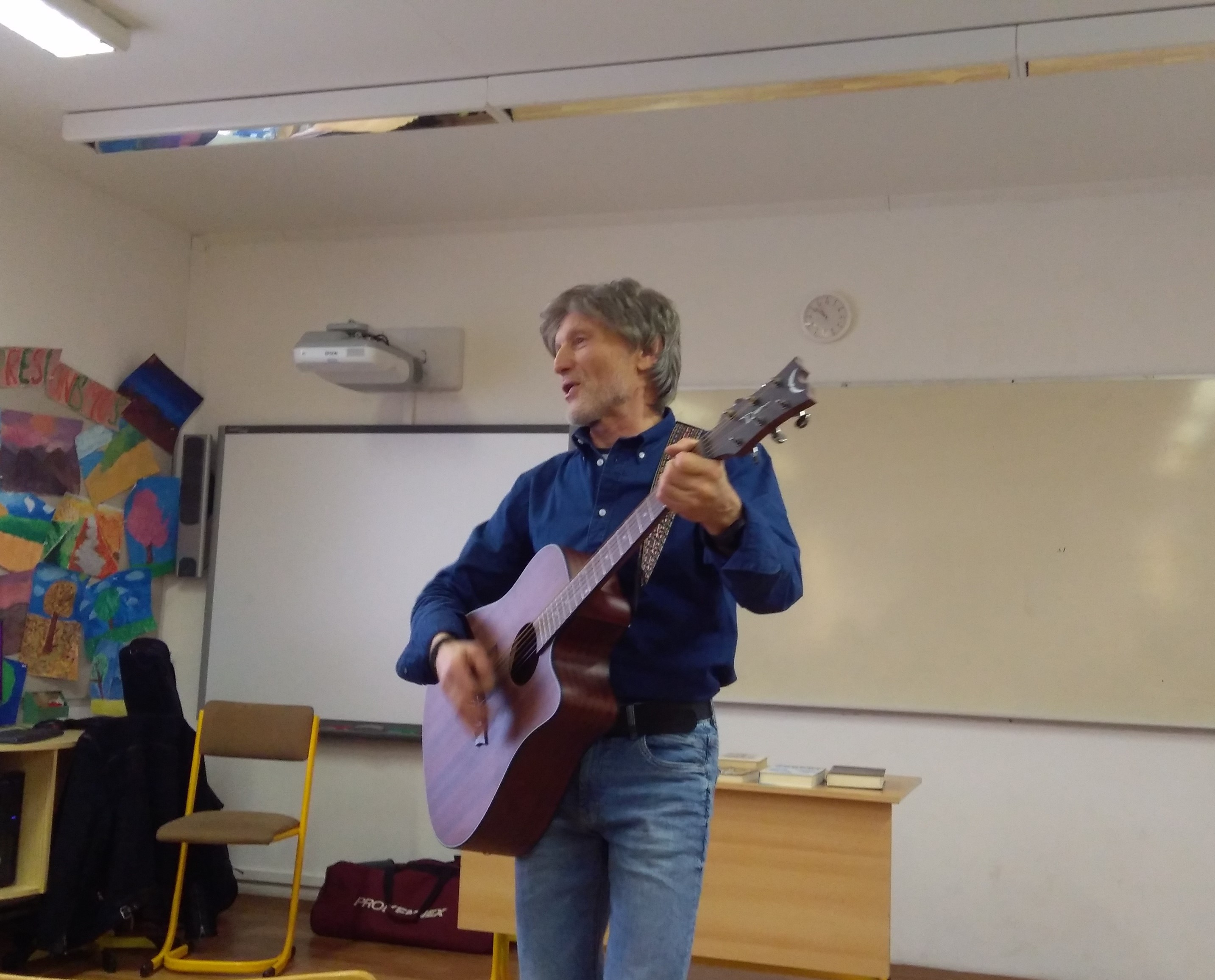 V pondělí 11. 11.2019 si pro žáky 7. – 9. třídy naší školy připravil pan spisovatel povídání o svých knížkách, které v závěru doplnil také písničkou.