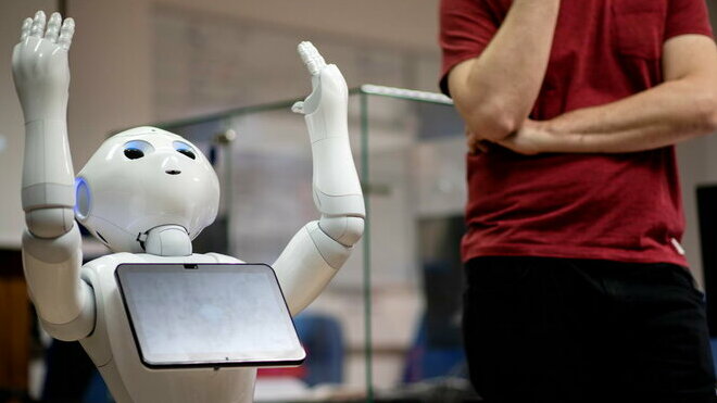 Nejprve jsme se seznámili se sociálním robotem Karlem Pepperem, který dokáže navázat kontakt s lidmi a komunikovat s nimi.