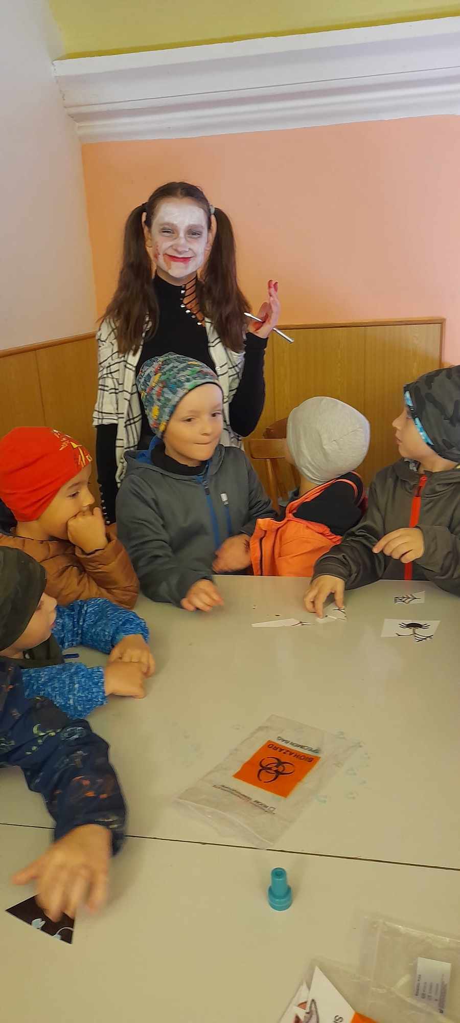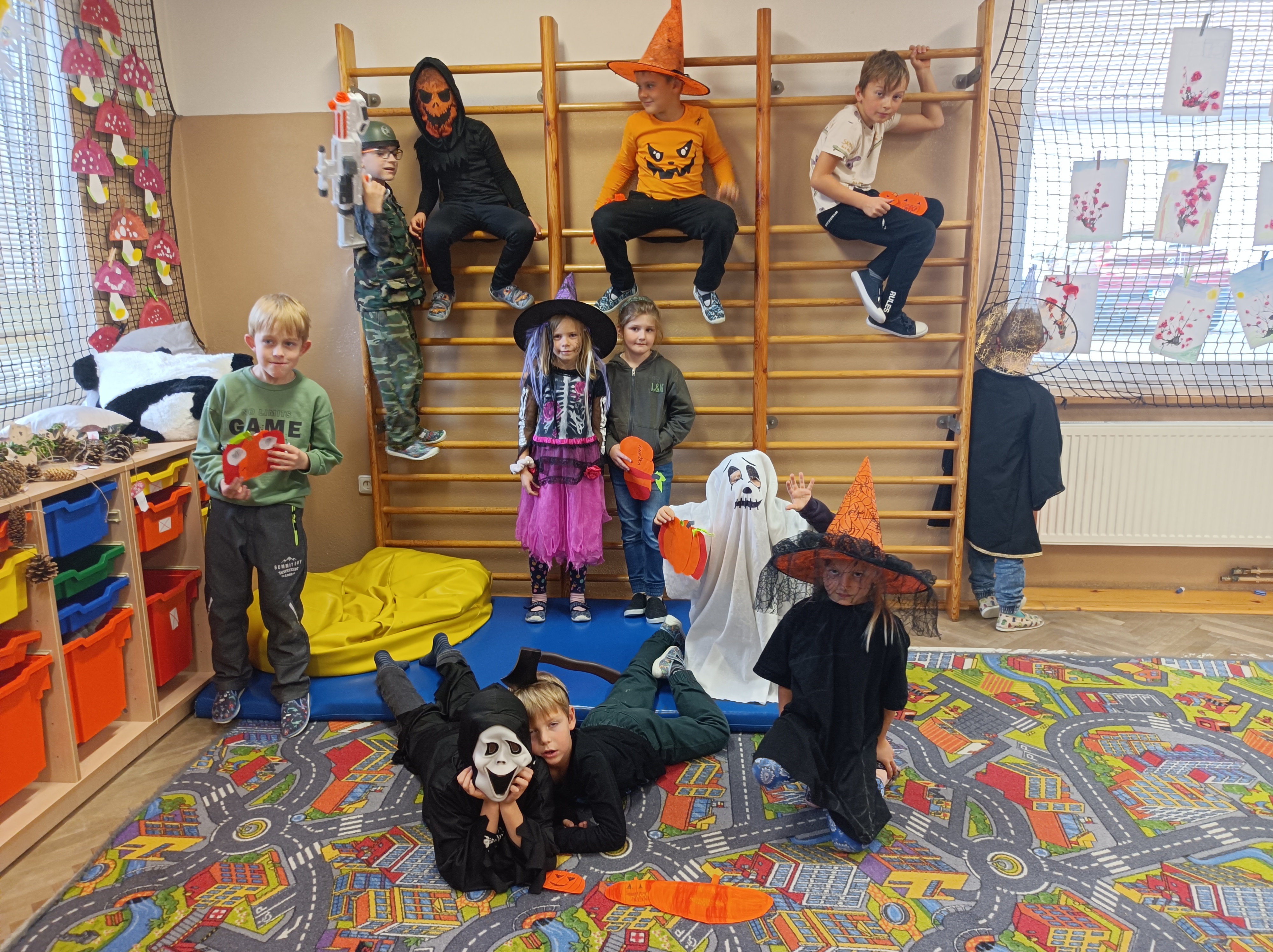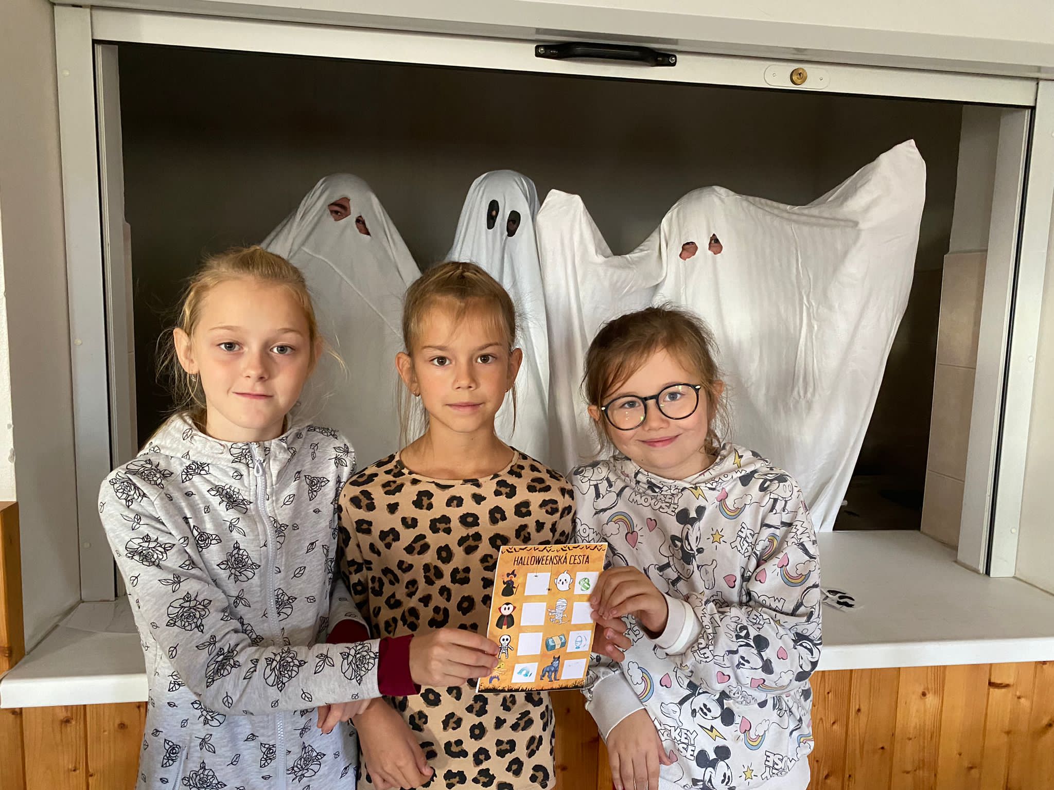 Také v naší škole jsme na tyto svátky nezapomněli, takže jste tu mohli potkat různé duchy a strašidla - skoro celý týden, protože mladší žáci se se svými maskami rozloučit nechtěli ani v jídelně a našli se i tací, kteří přišli každý den v kostýmu jiném. :) Povídali jsme si o předcích, zapalovali svíčky a ve středu si užili Halloweenskou stezku, kterou pro své mladší spolužáky připravili žáci 9. ročníku.