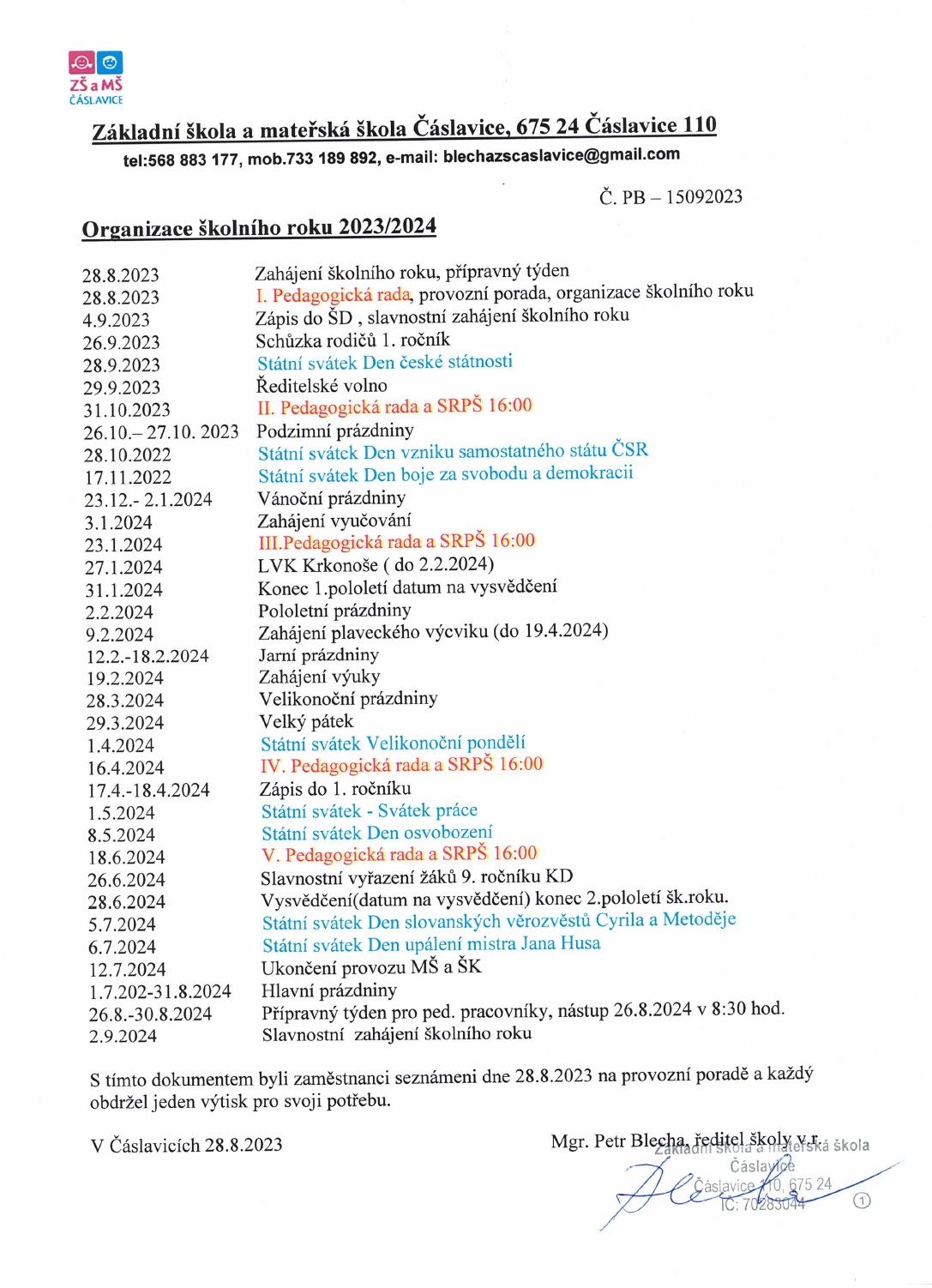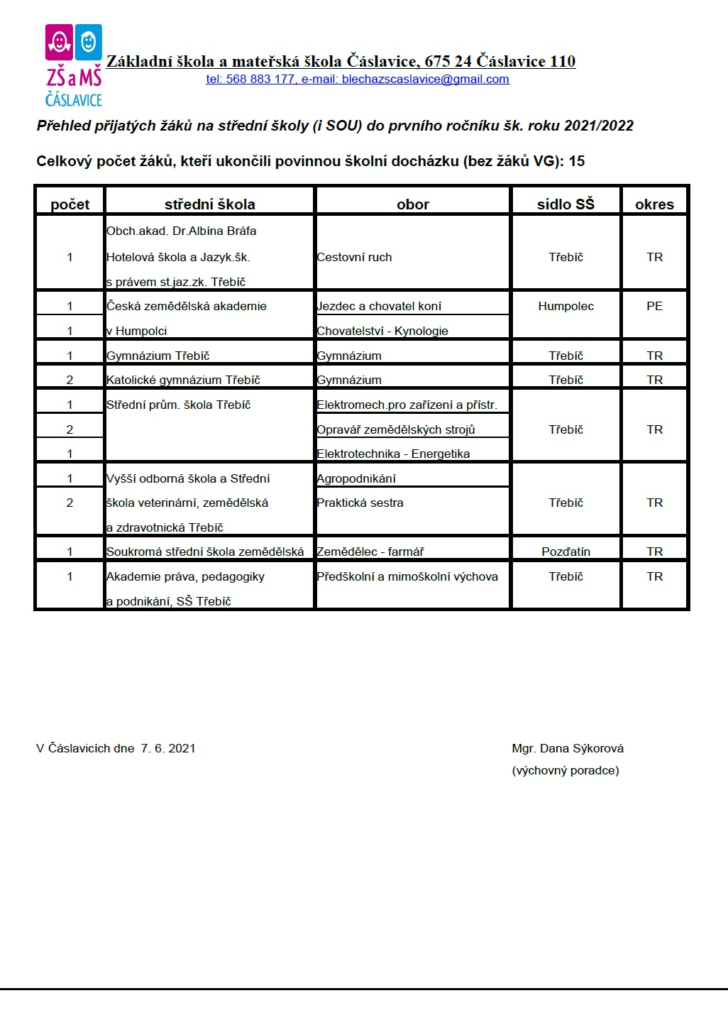 Výroční zprávy: (starší zprávy jsou k nahlédnutí v kanceláři školy)